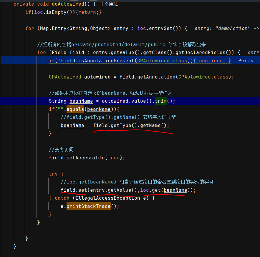给 @GPAutowired 字段注入依赖 |