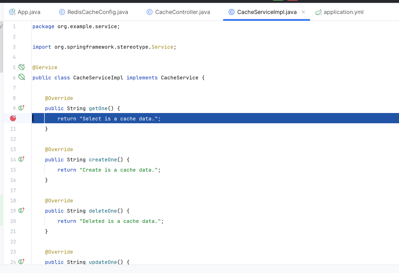 创建下面这四个接口,查询方法添加缓存,新增方法执行后添加缓存,删除和更新方法删除缓存。