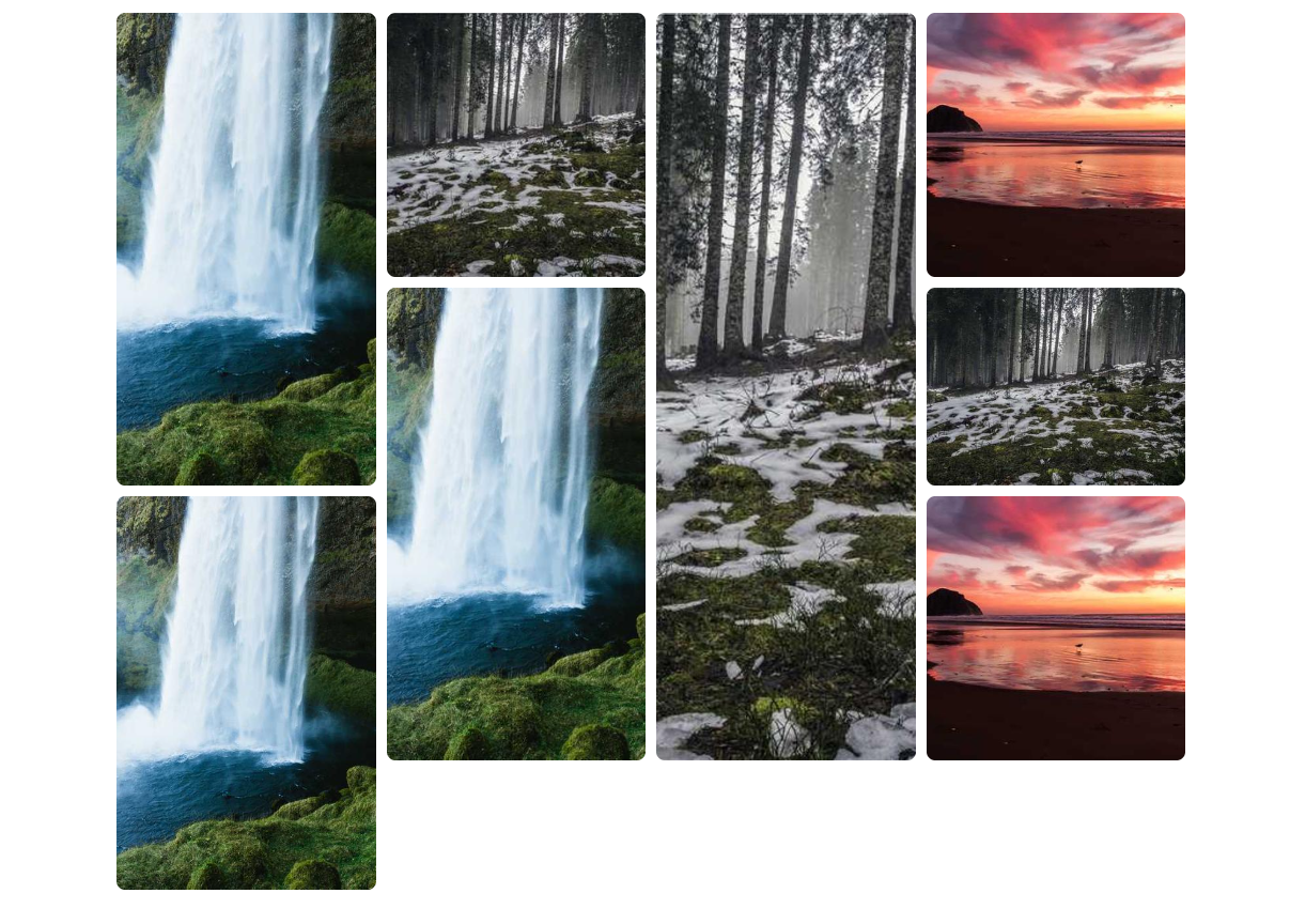 场景:相册页面,图片高度不一,宽度一致,实现错落有致的瀑布流,比 column-count 更灵活可控。