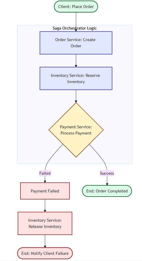 - 失败处理: 如果支付失败,编排器会调用库存服务释放库存。