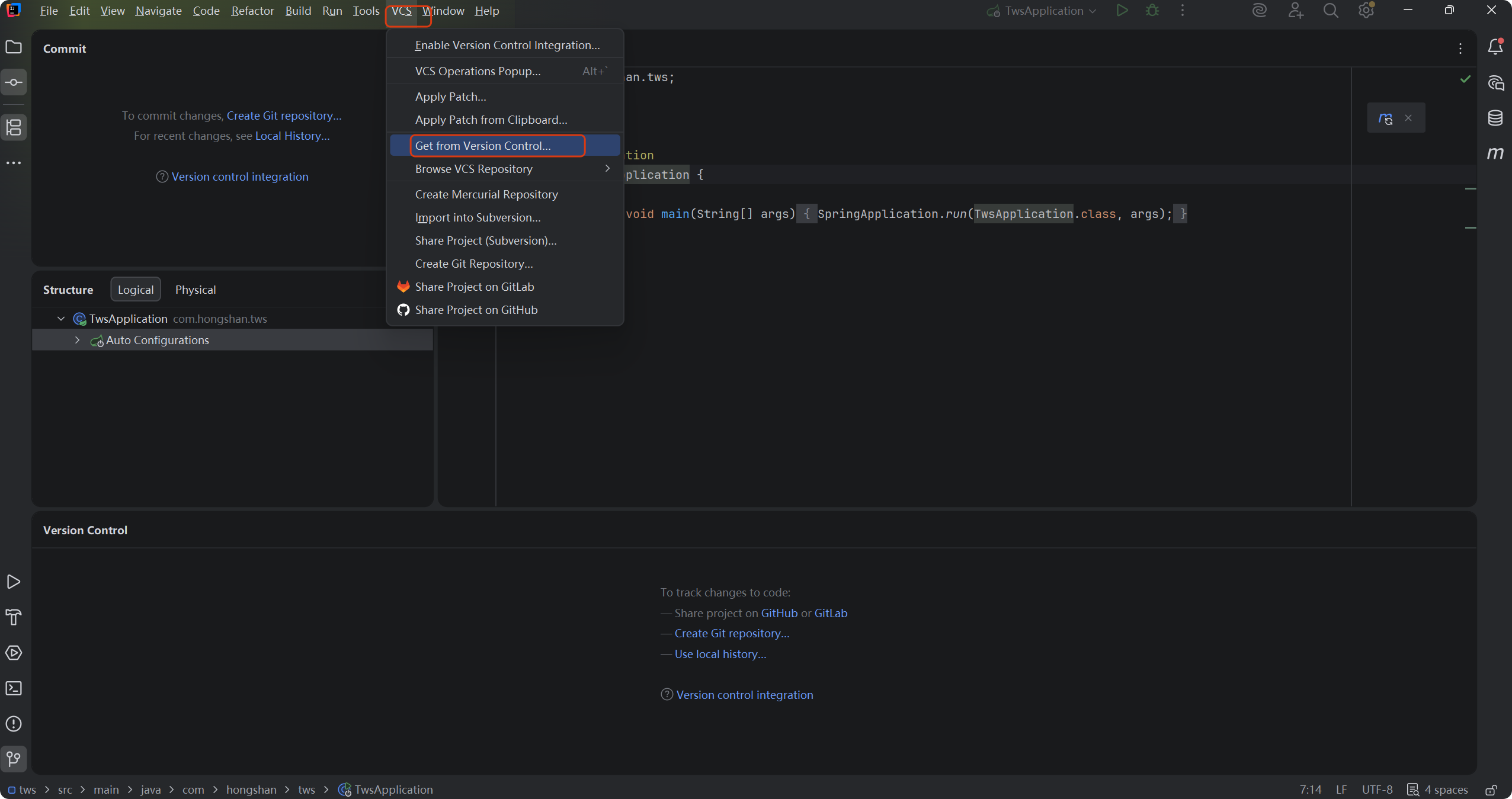 如果不需要我们新建工程,则通过GIT进行拉取代码