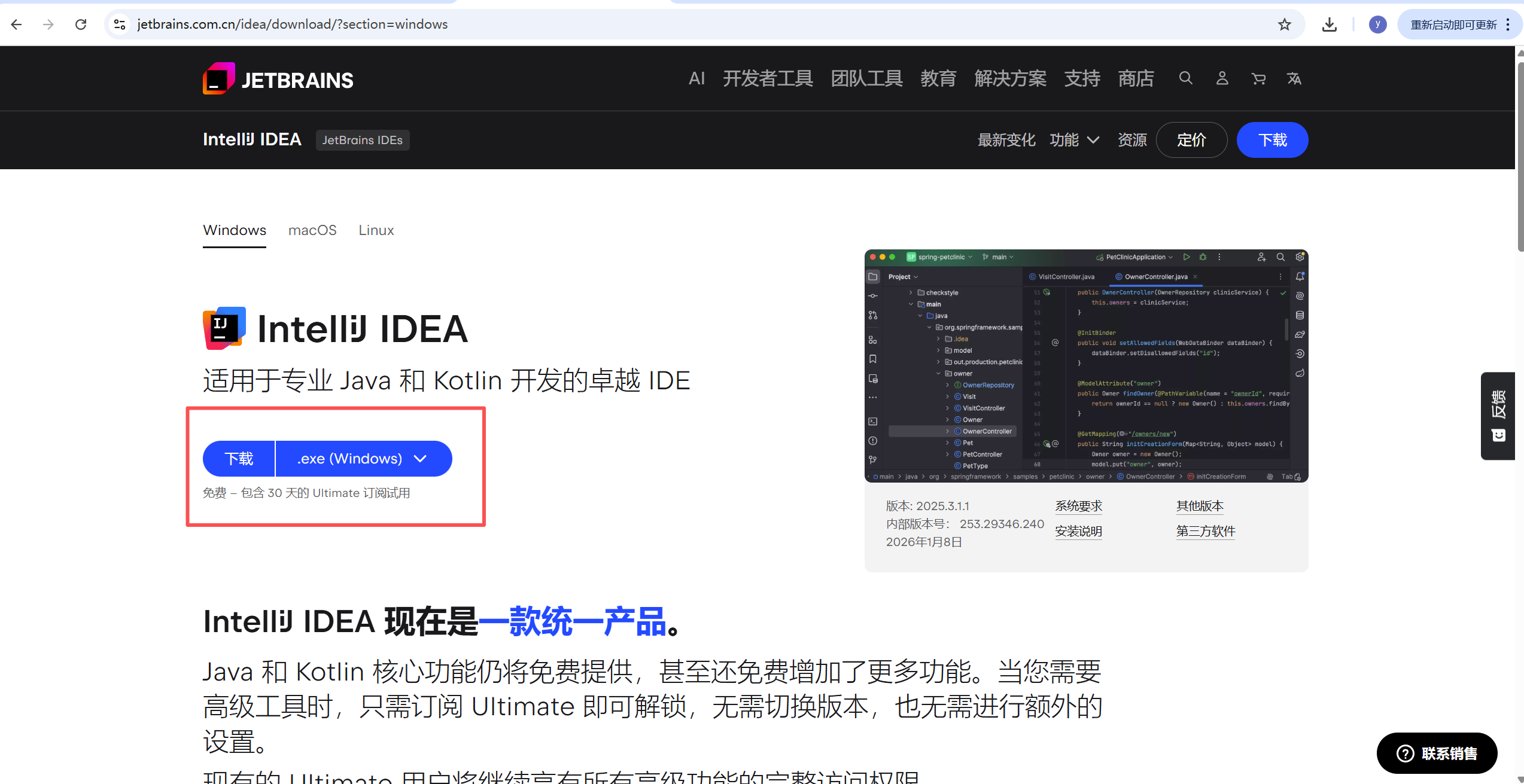 https://www.jetbrains.com.cn/idea/download/?section=windows