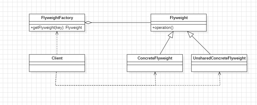 - UnsharedConcreteFlyweight(非共享享元):不需要共享的具体享元类