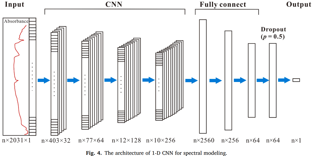 图 4 用于光谱建模的一维 CNN 架构(Fig. 4. The architecture of 1-D CNN for spectral modeling.)