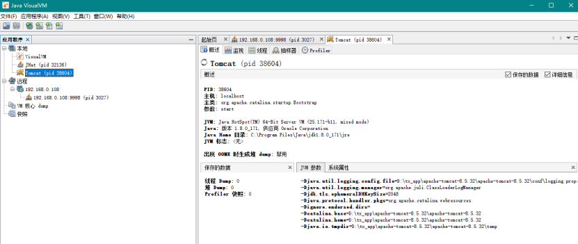 通过Visual VM,可以查看应用程序的基本情况,比如进程ID、Main Class、启动参数等,