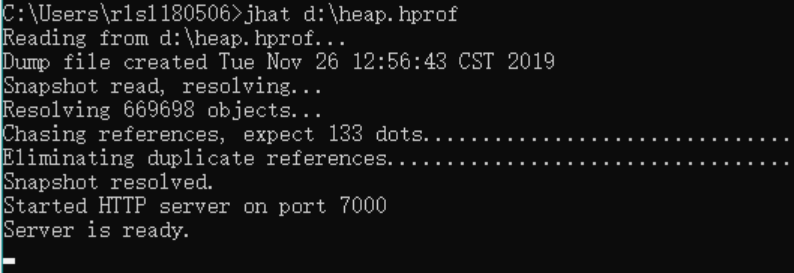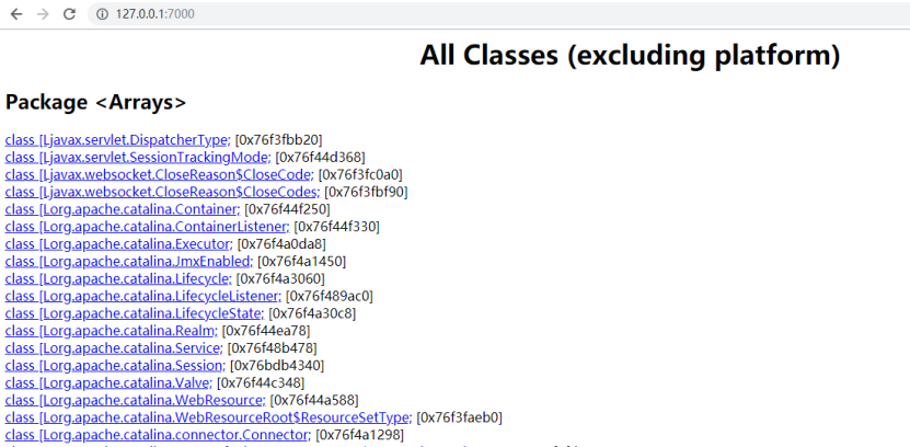 jhat在分析完成后,使用HTTP服务器展示其分析结果。在浏览器中访问htp://127.0.0.1:7000