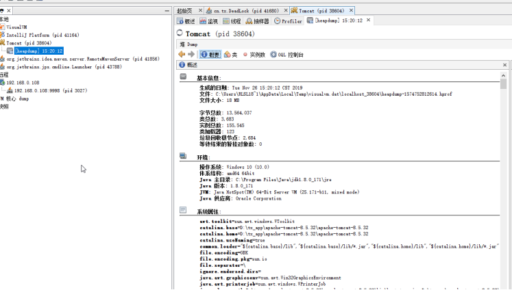 (1)概要页面展示了当前内存的整体信息,包括内存大小、实例总数、类总数等。
