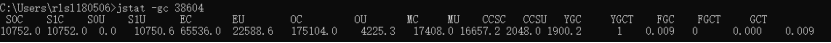 ②、-gc:监视 Java堆状况,包括 Eden 区、2 个 Survivor 区、老年代等容量、已用空间、GC 时间合计等信息。
