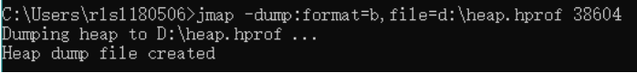jmap -dump:format=b,file=d:\heap.hprof 38604