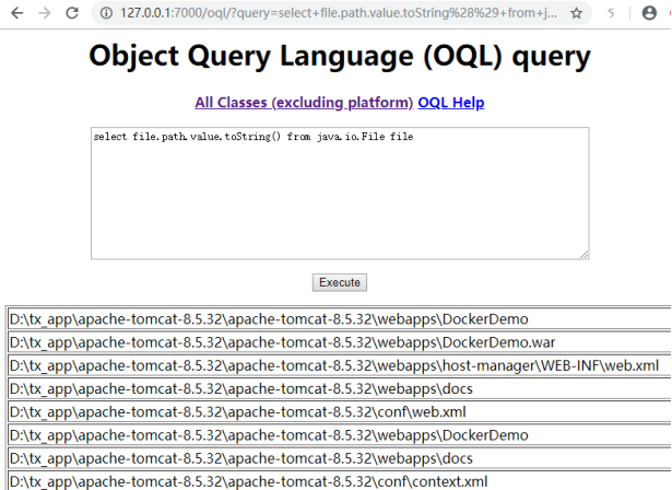 使用OQL查询出当前Java程序中所有java.io.File 对象的路径。