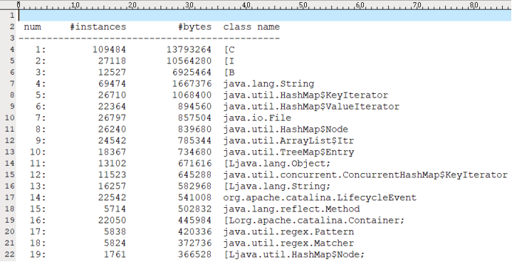 可以看到,这个输出显示了内存中的实例数量和合计。