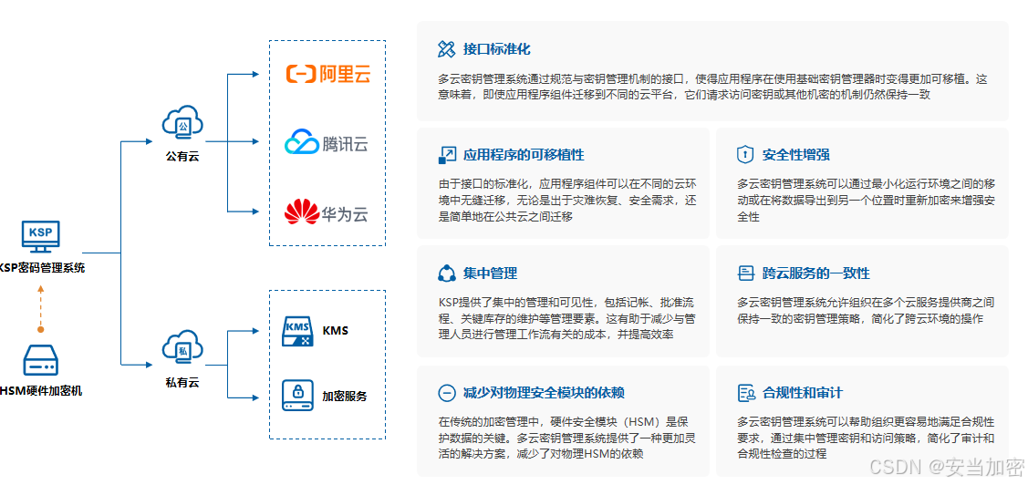 - 多云透明代理:应用仍调用标准 KMS 接口,但实际由 KSP 统一调度;