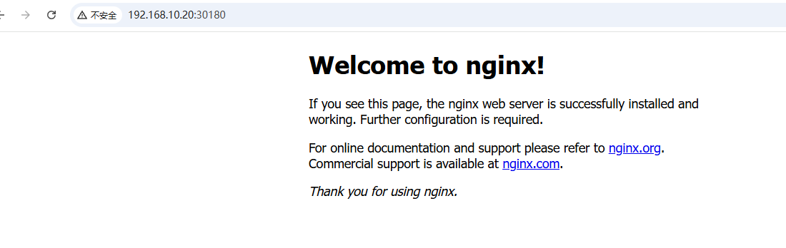 #点击 service 资源的节点端口 30180/TCP,可以访问内部的 nginx 页面了