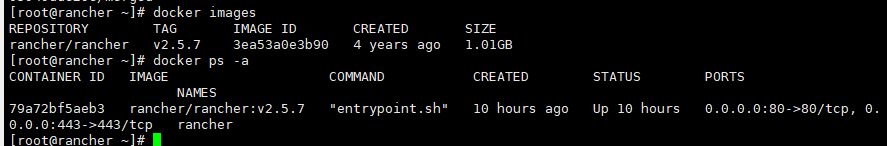 docker run -d --restart=unless-stopped -p 80:80 -p 443:443 --privileged --name rancher rancher/rancher:v2.5.7