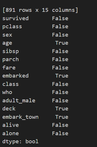 print(df.isnull().any()) # 显示每列是否存在缺失值
