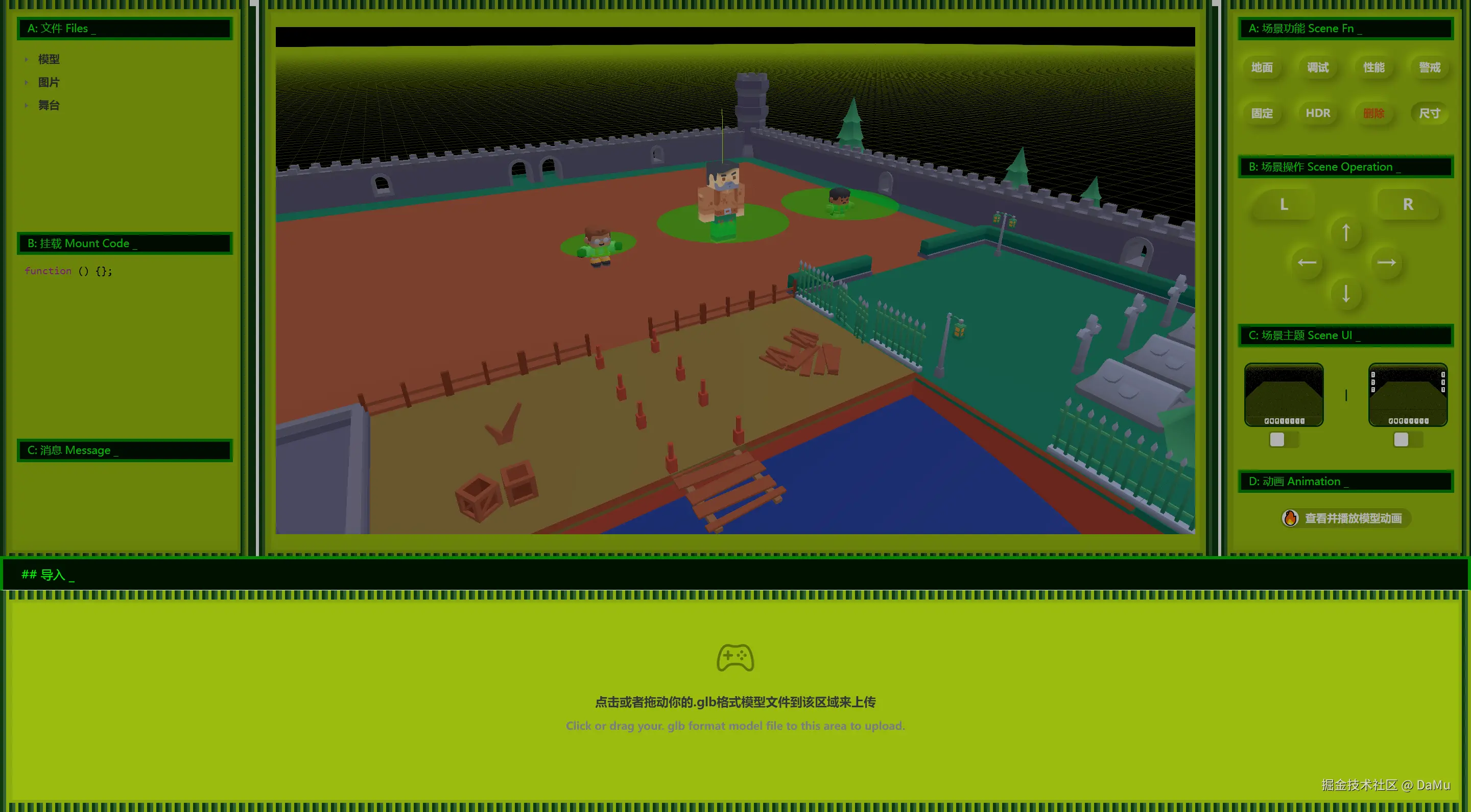A: Dreamcore3D ARPG IDE 采用经典复古游戏机UI界面风格,功能方面都是毫无压力的一键式操作,覆盖全年龄段,上手即喜欢!