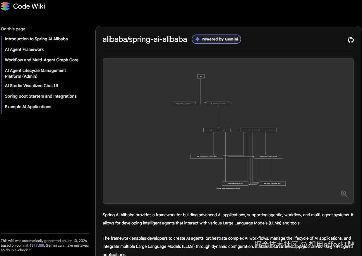 - 自动同步:Code Wiki 会监控你的 Git 提交,每当你合并代码(PR)后,它会自动重新扫描并更新相关的维基页面。