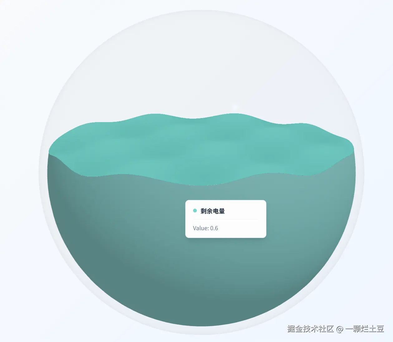 大家最熟悉的莫过于 ECharts 的 echarts-liquidfill 插件。它简单、好用,但在这个"卷"视觉的时代,传统的 2D 扁平水球有时显得不够"震撼"。