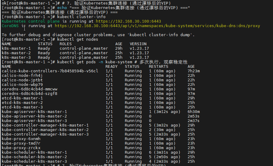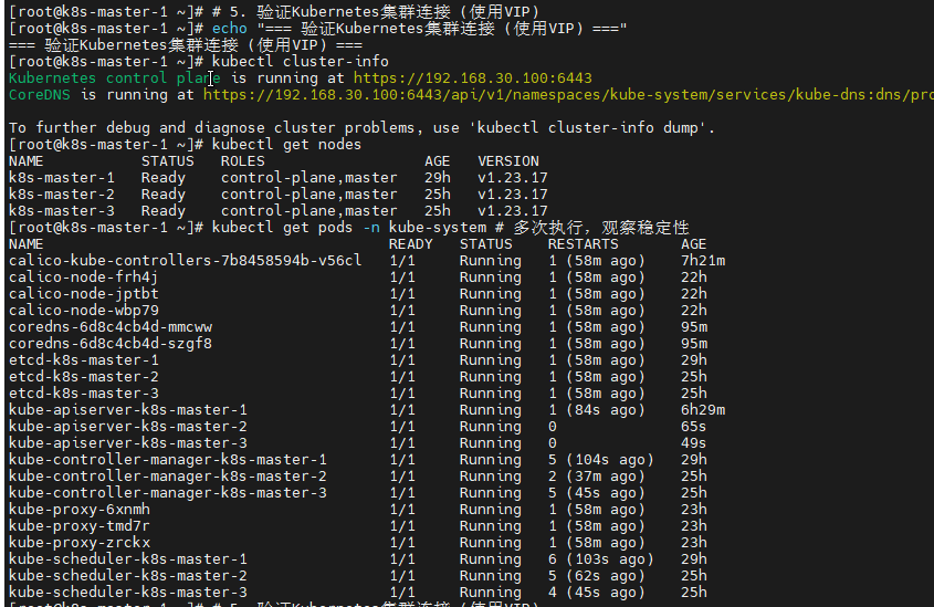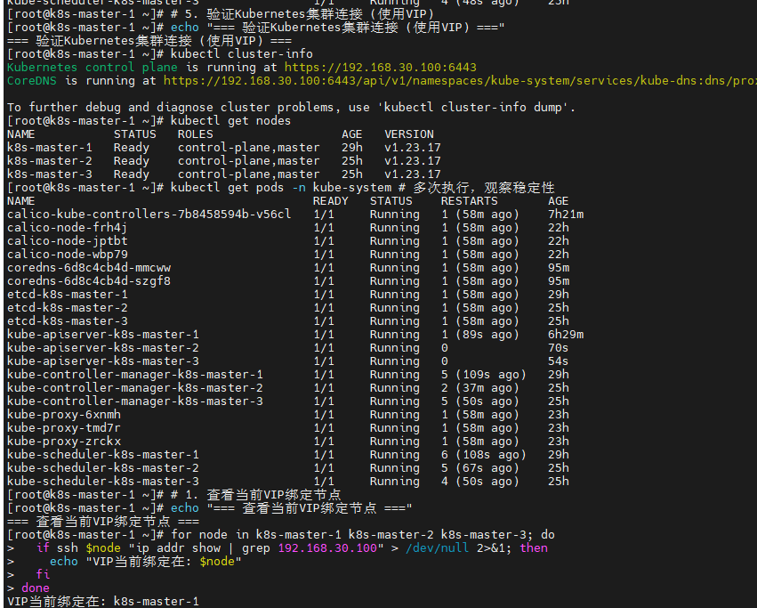 echo "✓ Kubernetes集群可通过VIP连接且稳定"
