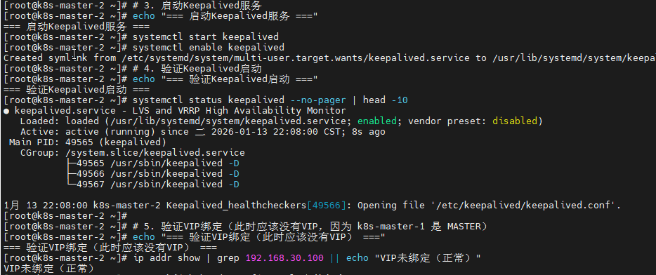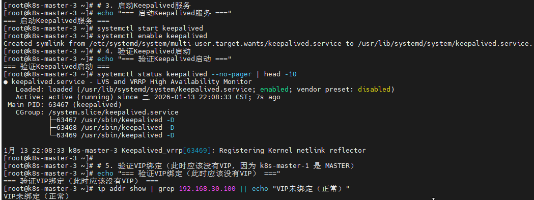 # 5. 验证VIP绑定(此时应该没有VIP,因为 k8s-master-1 是 MASTER)