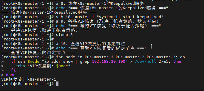 echo "=== 等待VIP恢复(取决于抢占策略) ==="