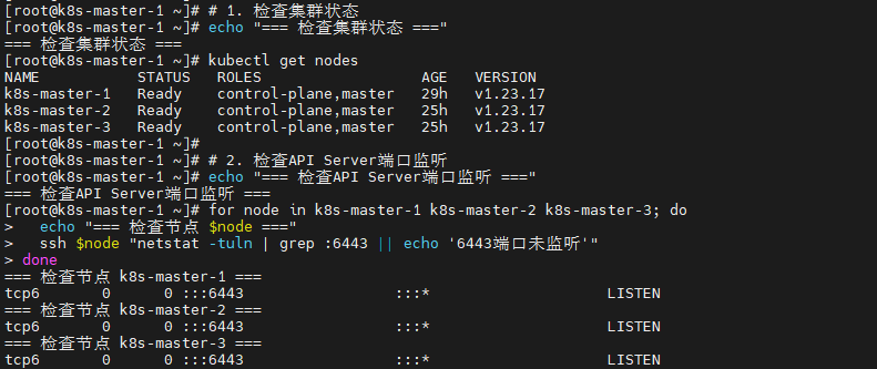 ssh $node "netstat -tuln | grep :6443 || echo '6443端口未监听'"