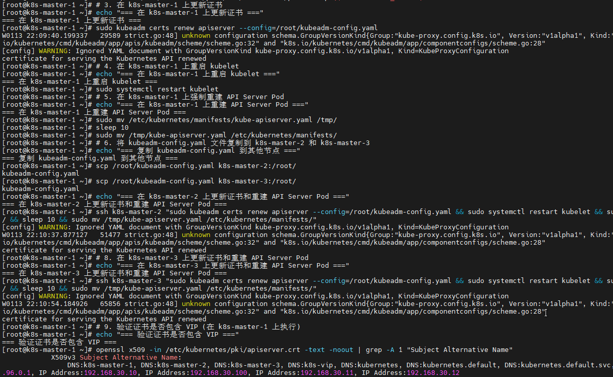 echo "=== 在 k8s-master-1 上更新证书 ==="