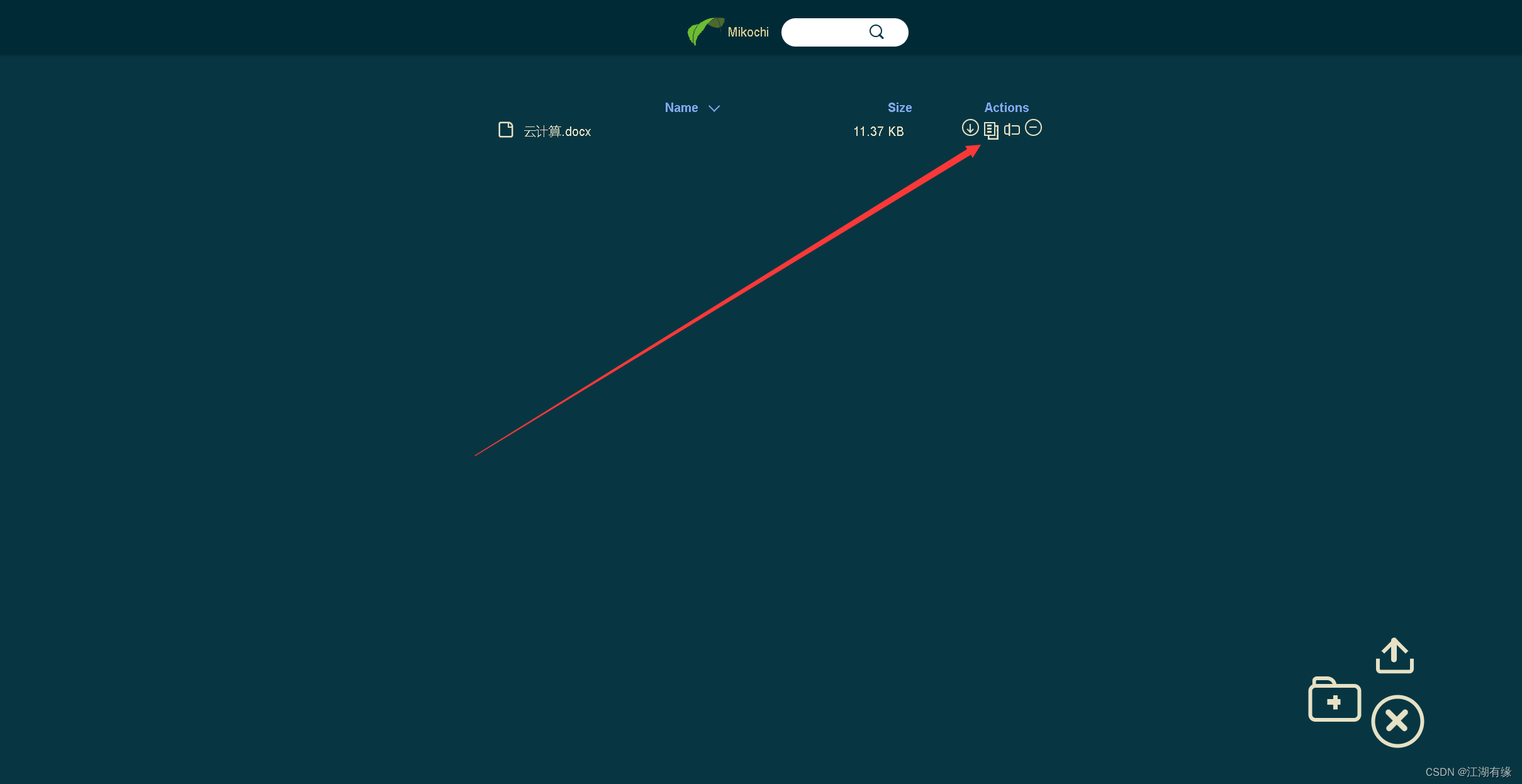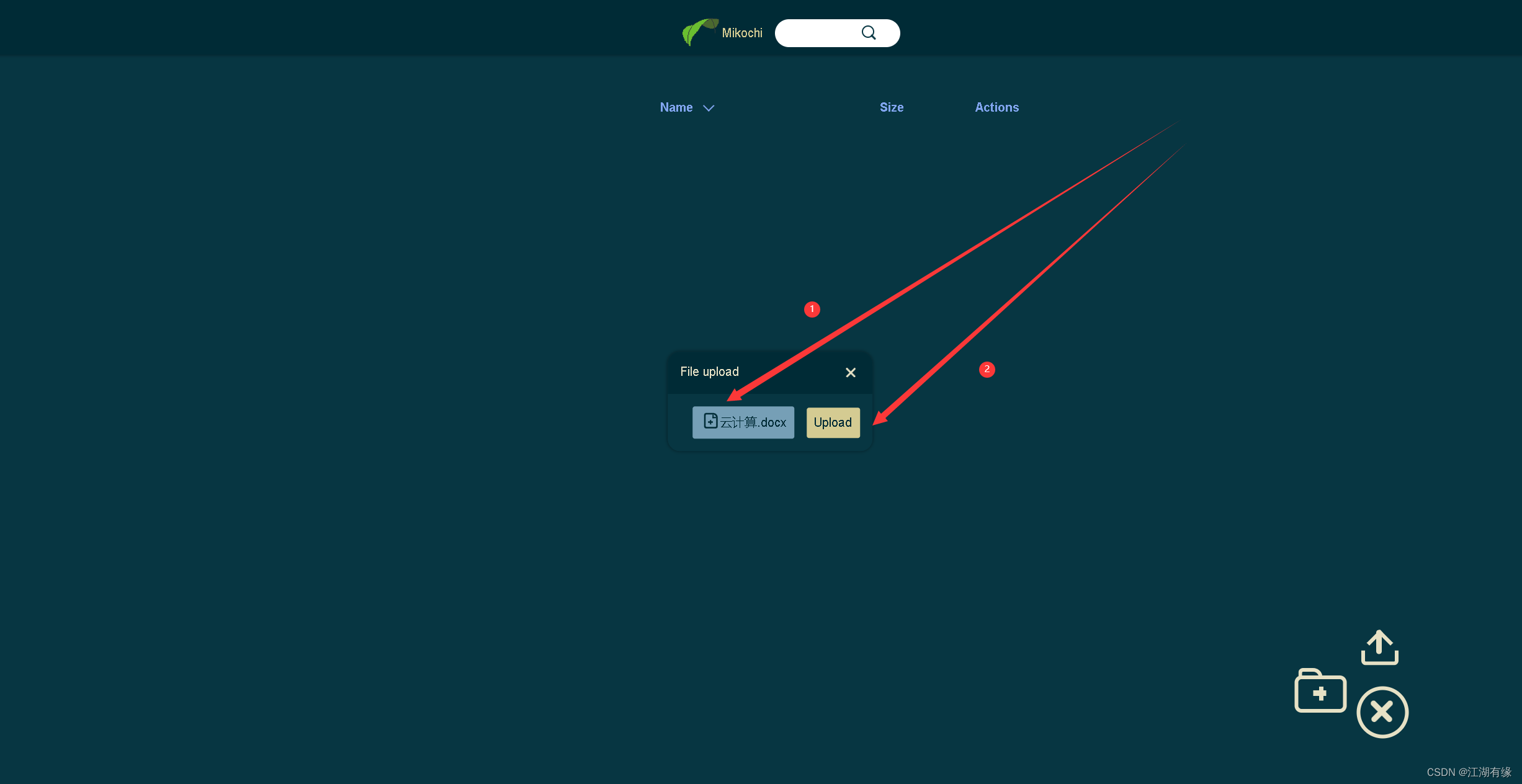 将本地文件上传到Mikochi,点击"upload"开始上传。