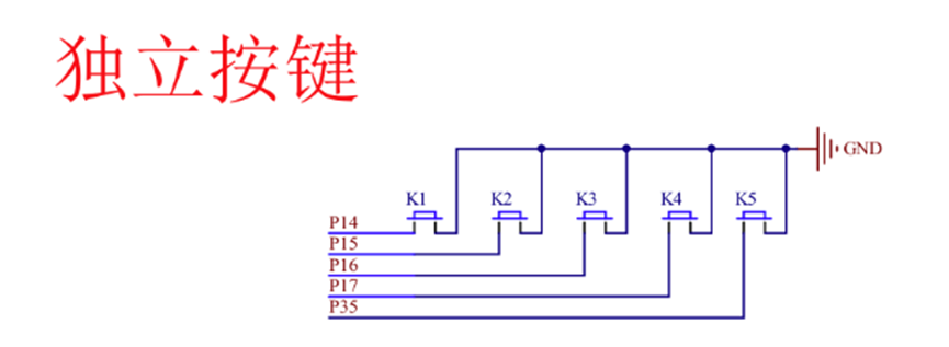 按键一端接地,另一端接GPIO引脚,并配置为上拉输入模式(默认高电平)。