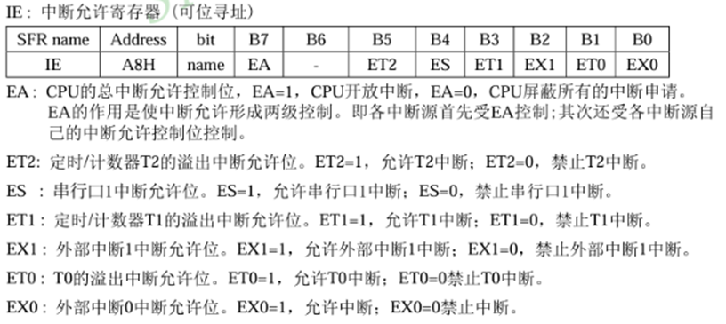 - 使能中断 :设置IE寄存器(如