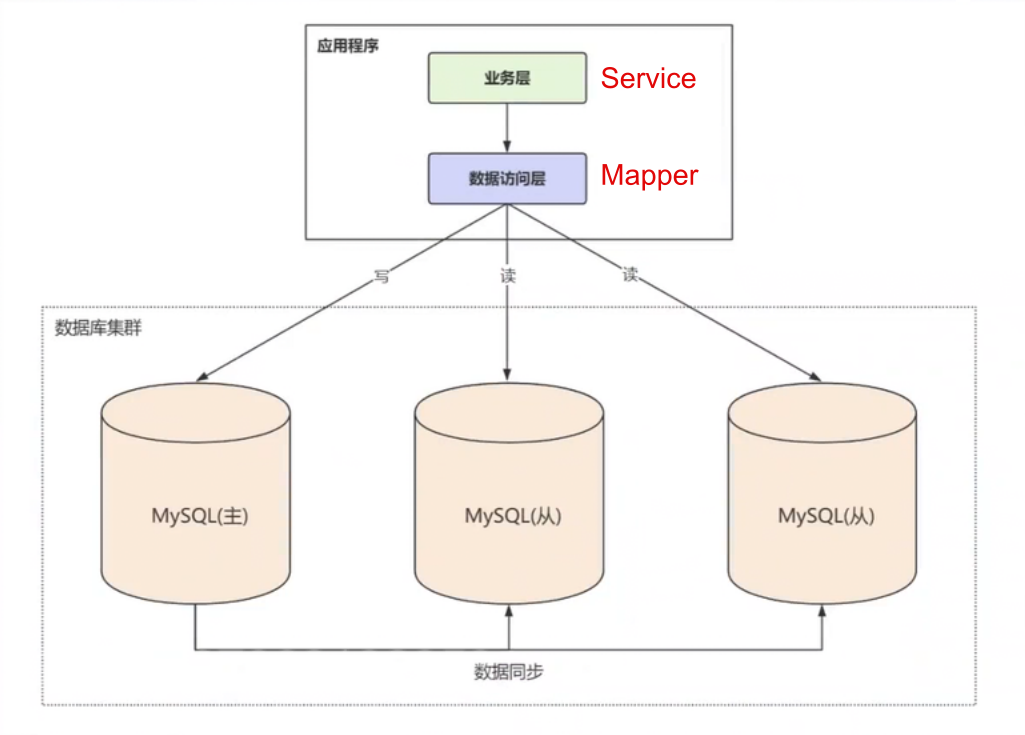- 将读操作 和写操作 分配到不同的数据库节点上,分散数据库读写操作的压力