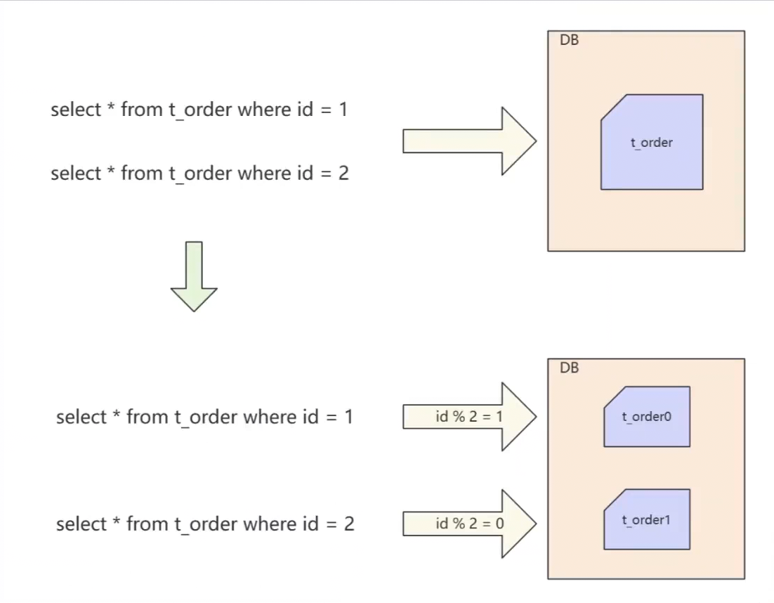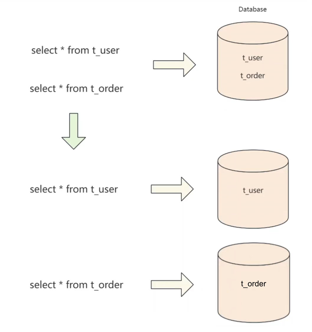- 水平分库 :如果单表切分之后,单台服务器依然无法满足数据库性能要求,那么就需要将多个表分散在不同的数据库服务器上