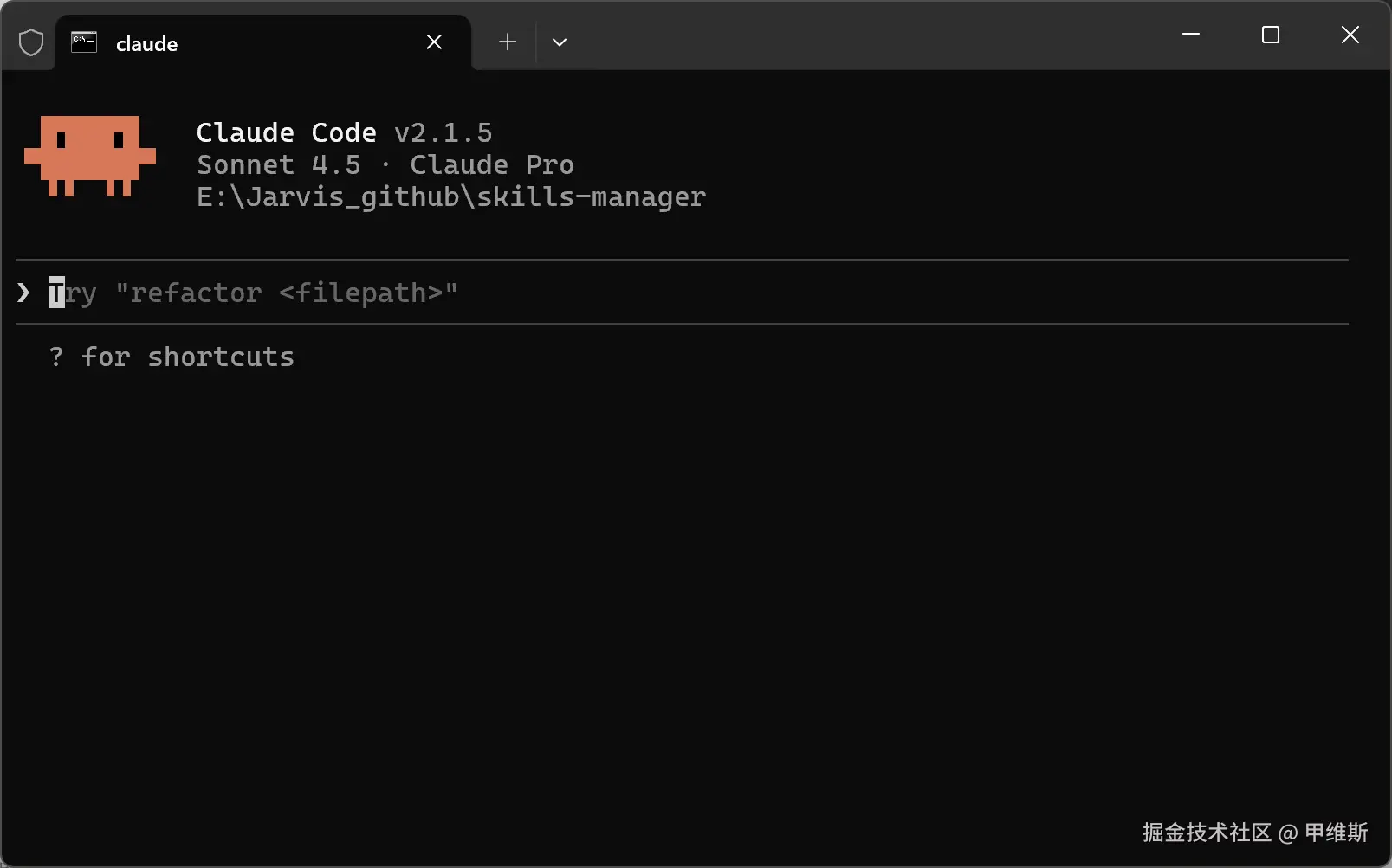 找一个合适路径,创建一个文件夹。比如叫 skills 或者叫 Skill-Manager。