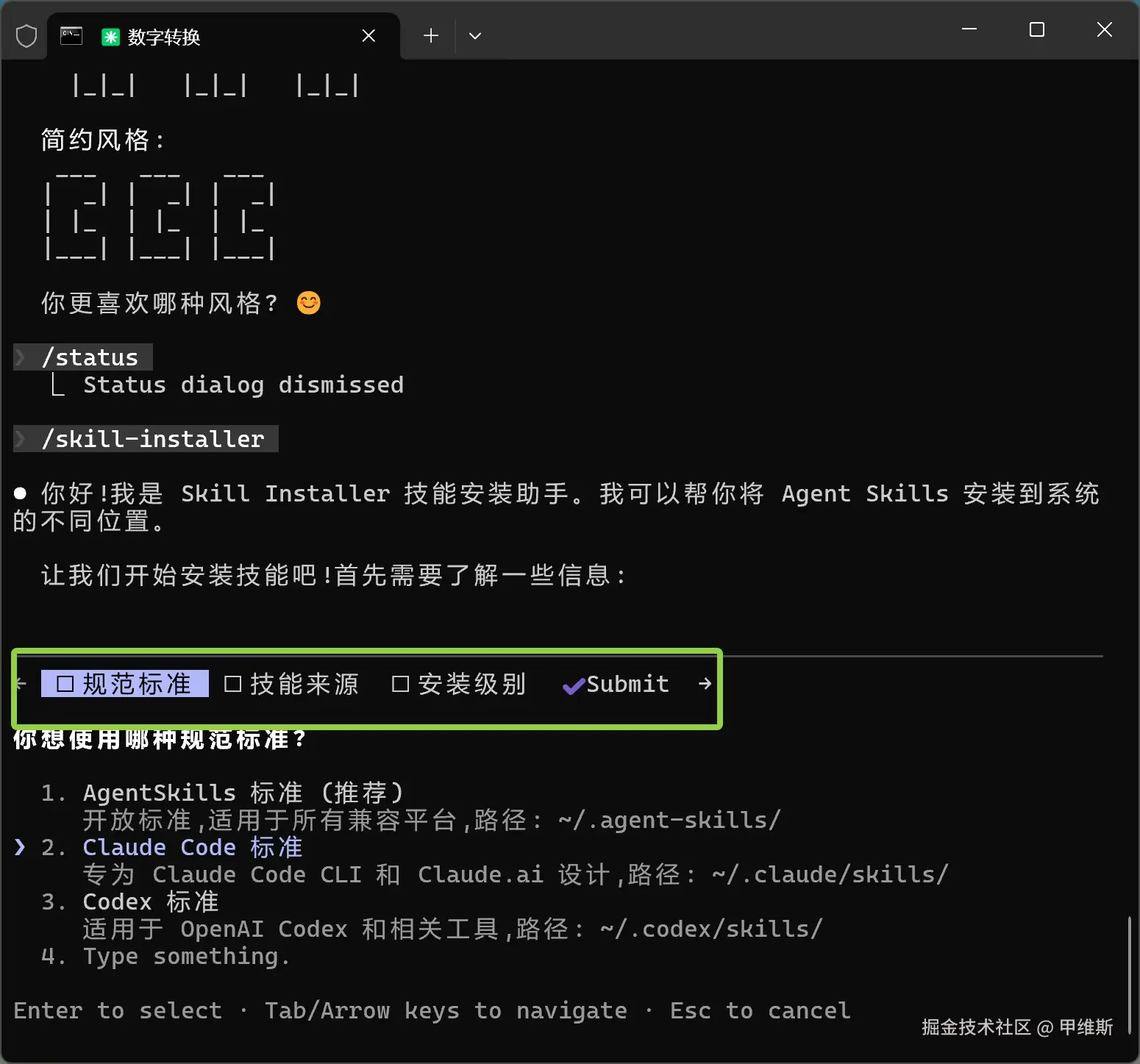可选项包括 AgentsSkill标准,Claude标准,Codex标准。