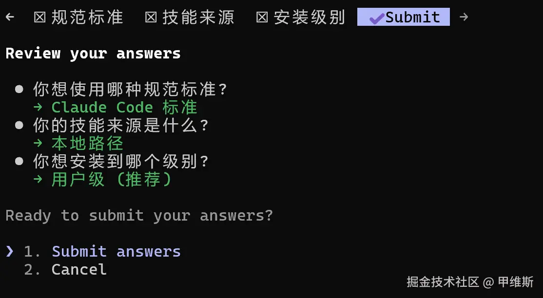 安装的时候需要 询问这是一个什么级别的技能,比如用户级,项目级,或者其他,这个级别也根据上面的文档来。