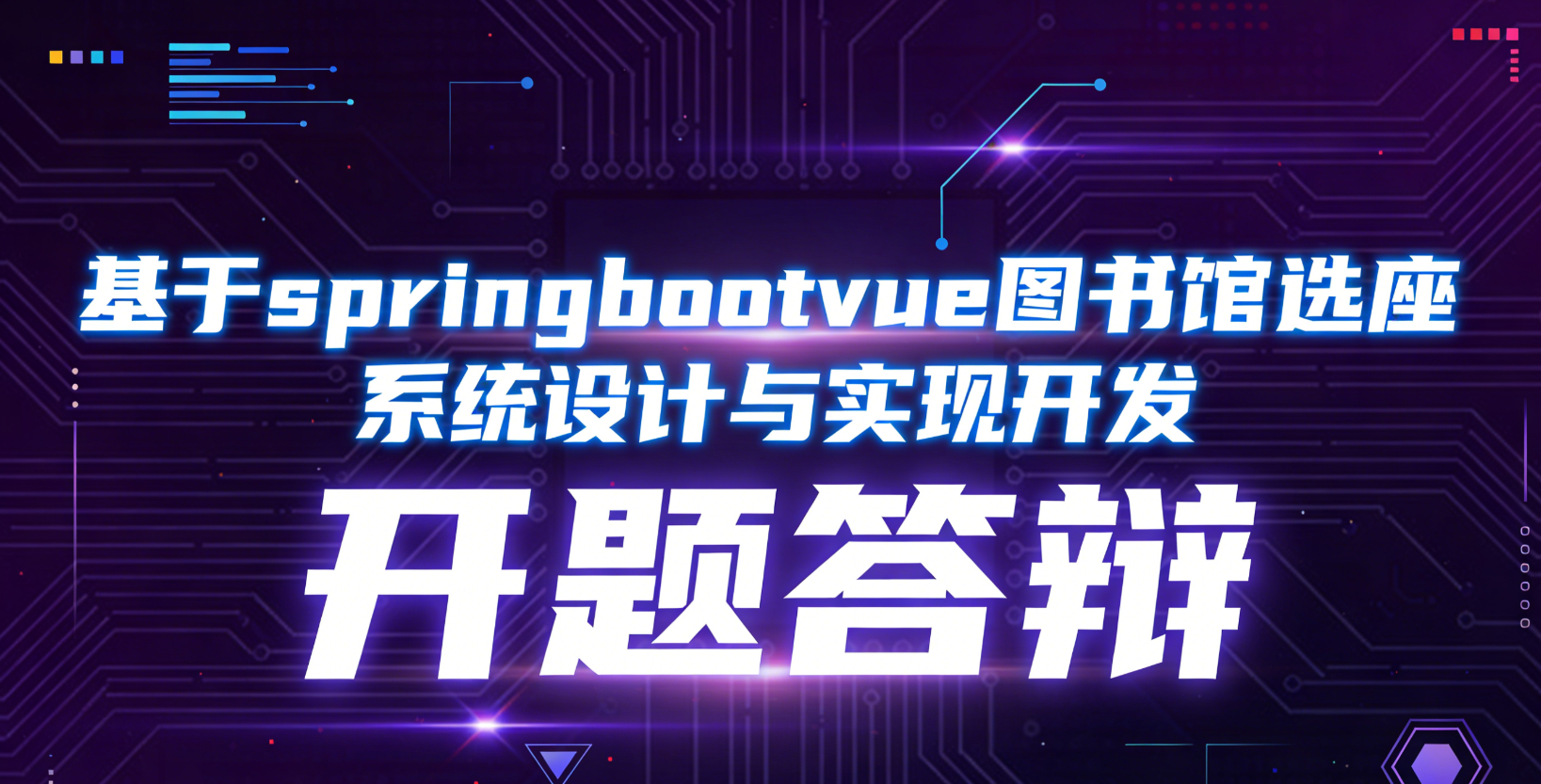 各位老师好,我是xx同学。我的课题是"基于SpringBoot+Vue的图书馆选座系统"。系统主要解决图书馆占座、座位利用率低的问题,分学生端和管理端:学生可以预约/取消座位、签到、查看信誉积分;管理员可发布通知、审核预约、统计座位使用率。技术栈用SpringBoot做后端、Vue3做前端、MySQL8.0存数据,跑在Tomcat9上,开发工具IDEA2020.3.4。下面请各位老师提问。