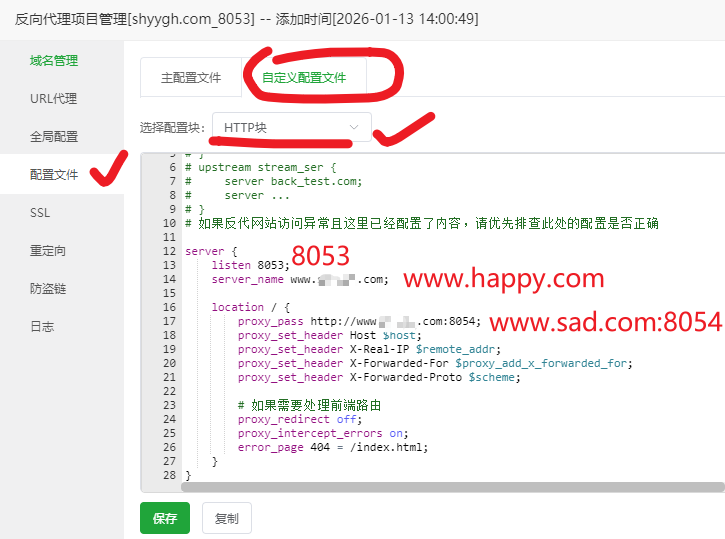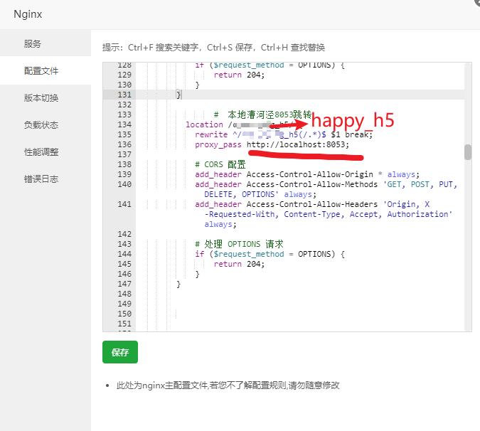 具体设置:注意:这种方式无法实现: https://www.happy.com/happy_h5访问 http://www.happy.com:8053