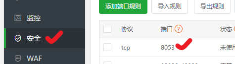 在宝塔的-安全中,开通某一个端口: