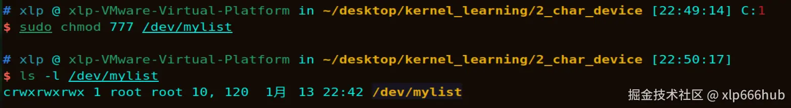 sudo chmod 777 /dev/mylist