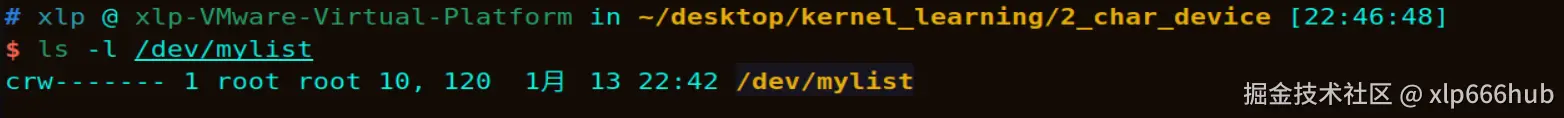 printk(KERN_INFO "[CharDriver] 模块加载成功!请查看 /dev/mylist\n");