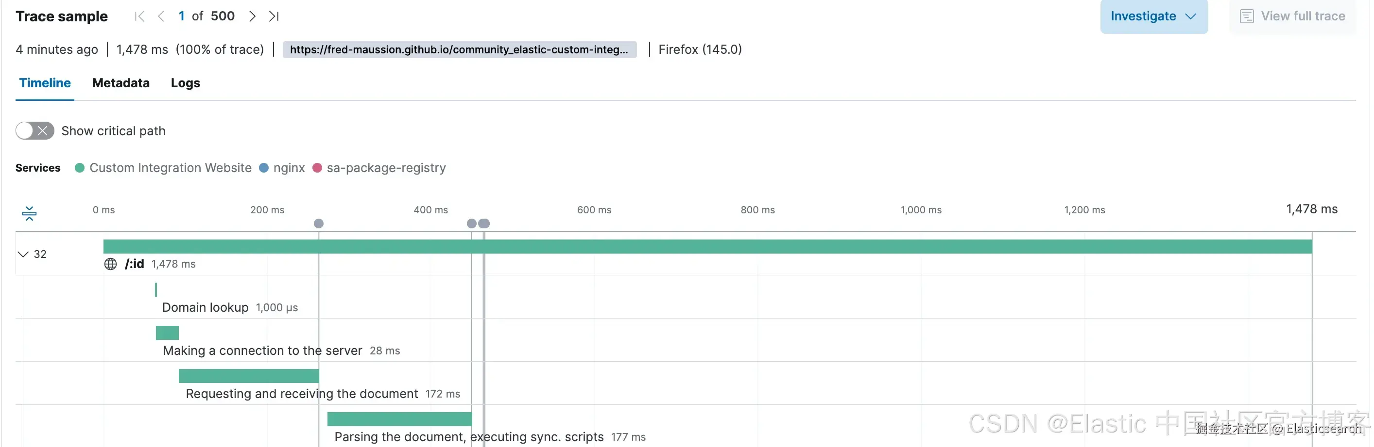 - 使用 Elastic 的统一可观测性,将 Nginx traces 与应用日志和指标关联