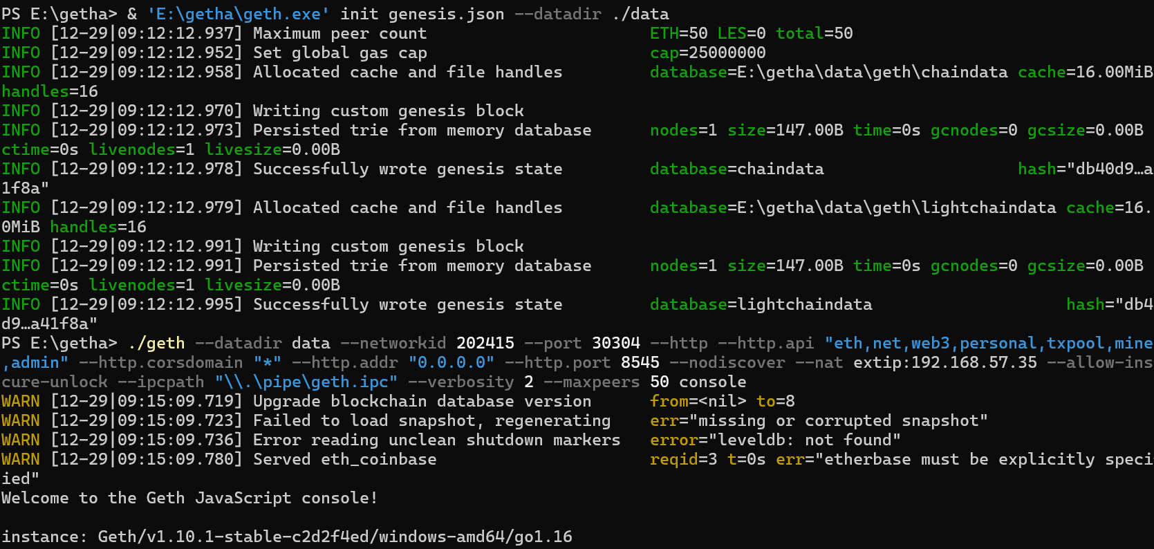 geth --datadir data --networkid 202415 --http --http.api "eth,net,web3,personal,txpool,miner" --http.corsdomain "*" --http.addr "0.0.0.0" --http.port 8545 --nodiscover --port 30304 console 2allow-insecure-unlock