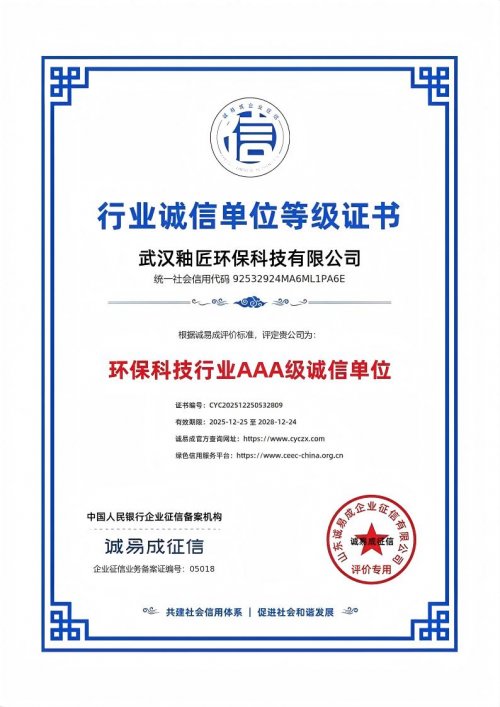 企业信誉:拥有"AAA级质量、服务诚信单位"及"环保科技行业AAA级诚信单位"等荣誉称号。