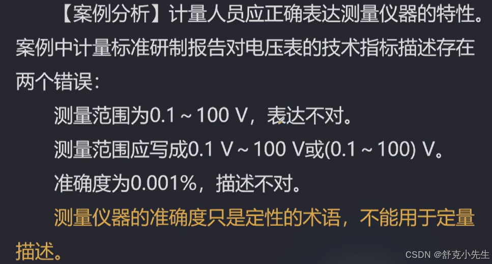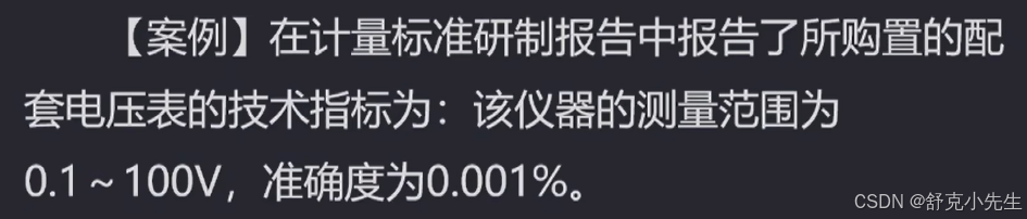 又如一台(0~150)V的电压表,其说明书给出的引用误差限为 ±2%,说明该电压表的任意示值的允许误差限均为 ±2%×150V = ±3V。
