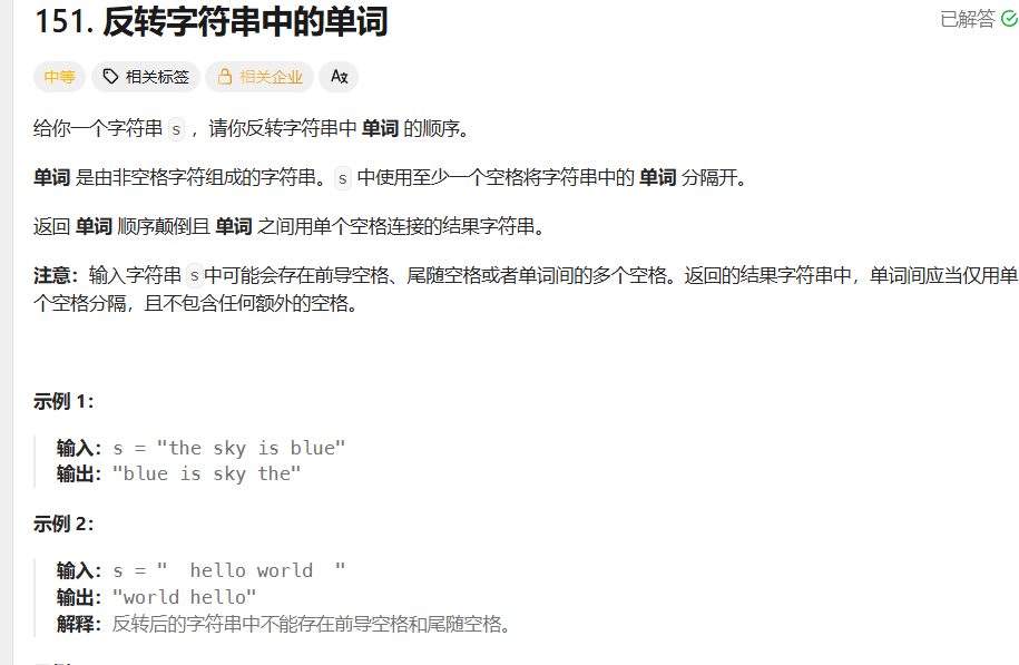 空间复杂度:O(n),用来存储字符串分割之后的结果。