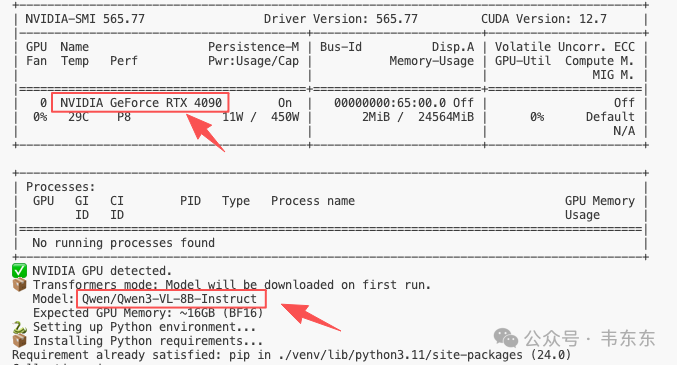 我用来开发的 Mac M4 Pro 是 24G 内存版本,公司还有一台 Mac Mini 是 64G 版本。这里顺道科普一个知识点,可能会有盆友觉得内存越大速度越快,但实际你去用两台内存大小不同的 Mac 运行 Qwen3-VL-8B 模型时,两台机器的推理速度几乎没有差别。