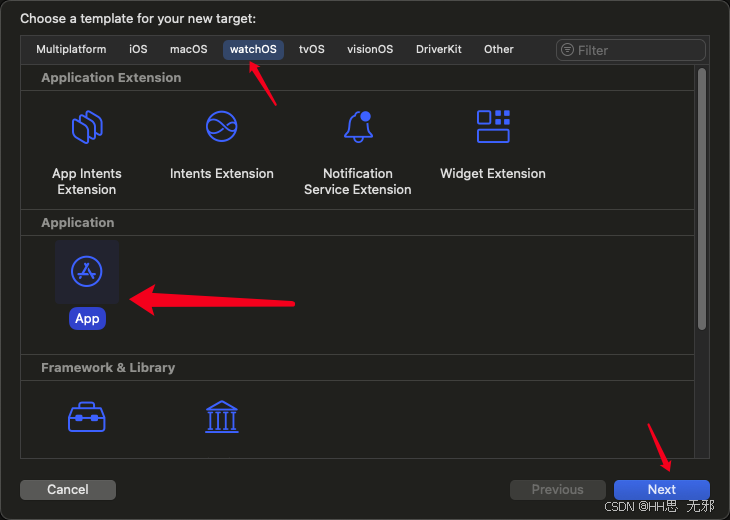 3、在弹出的窗口中,顶部选择 watchOS 选项卡。