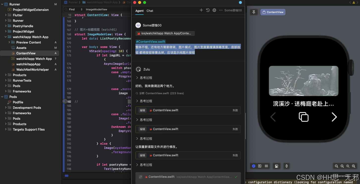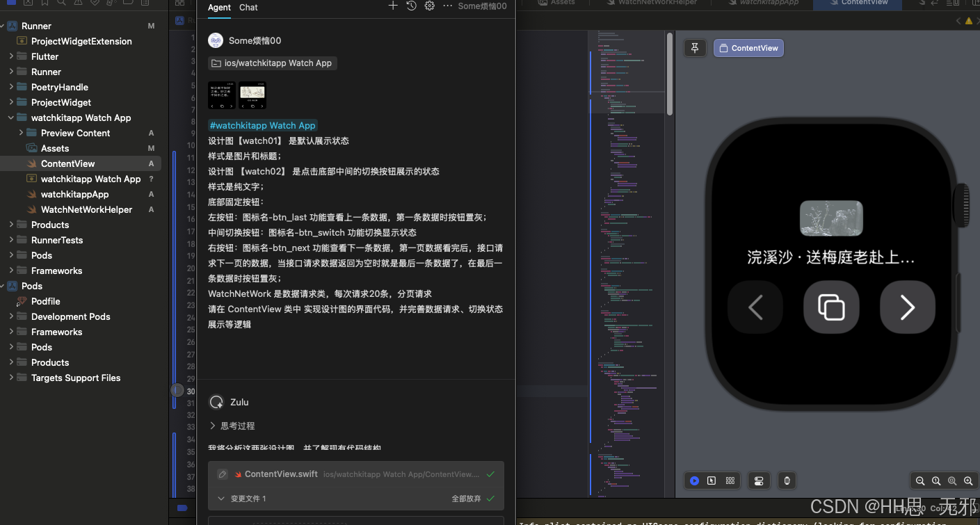 至此我的需求已经完成咯,网络请求接口定义、数据解析这里是提前写好的让AI 调用的,资源这些也是下载命名好的,这些准备好了,就可以让AI 完成需求了。