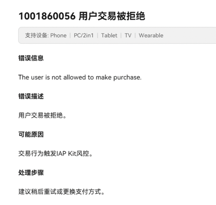 看IAP支付接口错误码文档,该错误码对应描述如下:
