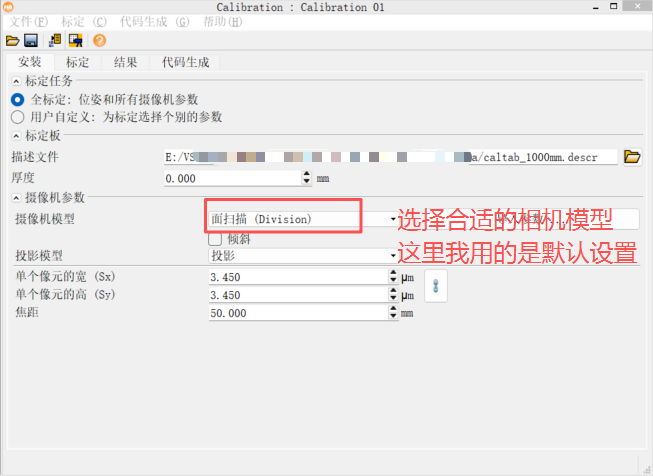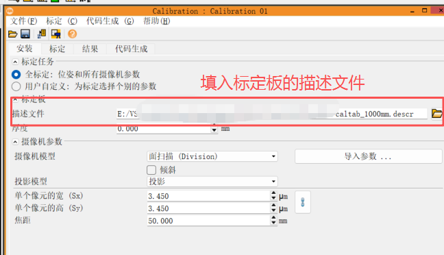 (2)选择标定板的描述文件